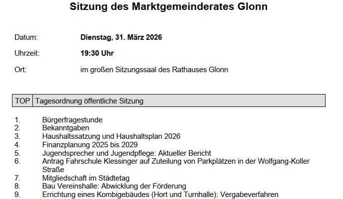 Am 19.01.2026 findet um 19:30 im Sitzungssaal im Rathaus die Gemeinderatssitzung statt. Die Tagesordnung können Sie hier ansehen: Öffentliche Bekanntmachung Die Fragestunde für die Bürger findet unmittelbar vor der Gemeinderatssitzung…