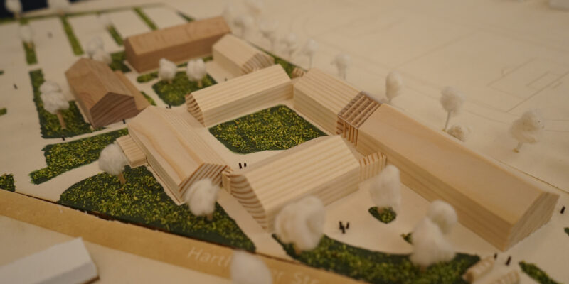 20 Studierende der Technischen Hochschule Rosenheim (TH Rosenheim) haben ihre Ideen für einen neuen Hochschulcampus westlich des Sportplatzes der Mittelschule vorgestellt. Die angehenden Architektinnen und Architekten erarbeiteten ihre Entwürfe in acht Arbeitsgruppen. Am heutigen Mittwoch kamen sie in den Haberkasten. Dort präsentierten sie ihre Modelle zunächst ihrem Dozenten, Professor Michael Körner von der Fakultät für Innenarchitektur, Architektur und Design, Bürgermeister Michael Hetzl, Stadtbaumeisterin Birgit Weichselgartner und Professorin Barbara-Solf-Leipold, Leiterin des Campus Mühldorf. Im Anschluss konnten Mitglieder des Stadtrats und des Zweckverbands Hochschulcampus Mühldorf a. Inn – Waldkraiburg sowie Vertreterinnen und Vertreter der lokalen Medien die Arbeiten ansehen und das Gespräch mit den Studierenden suchen.