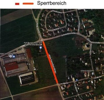 Aufgrund von Tiefbauarbeiten wird der Alois-Tenschert-Ring (von Höhe Im Weiler bis Schmutterstraße) von Montag, 03.11.25 bis Freitag, 07.11.25 für den Gesamtverkehr gesperrt.