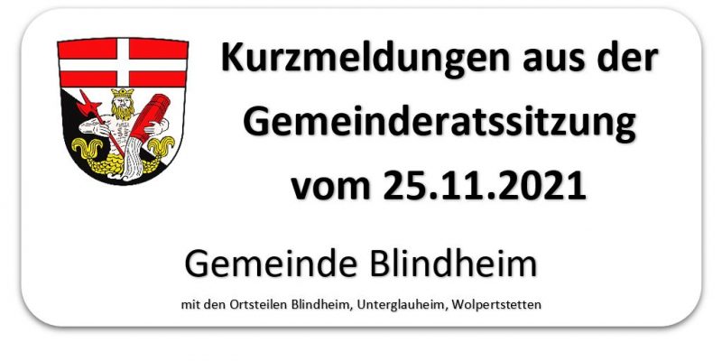 Öffentliche Sitzung des Gemeinderats Blindheim am 07. April 2022 um 19.30 Uhr in der Gemeindehalle Blindheim. Die Tagesordnung ist vorher in den gemeindlichen Schaukästen sowie auf der Homepage der VG…