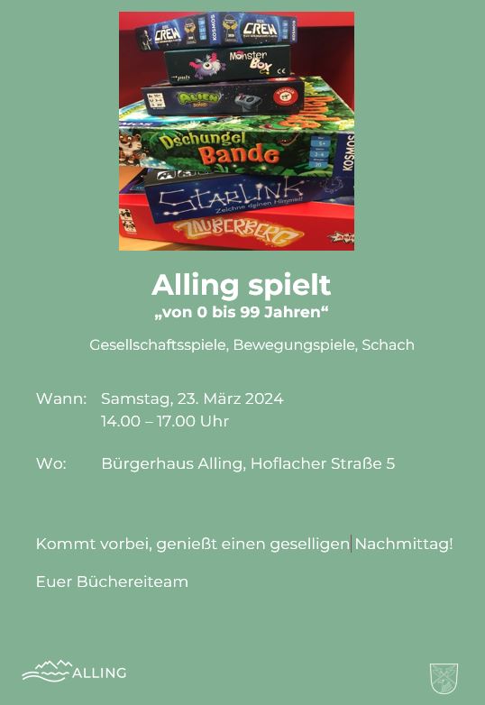 [Amtlicher Beitrag] Bücherei Spielenachmittag Ankündigung