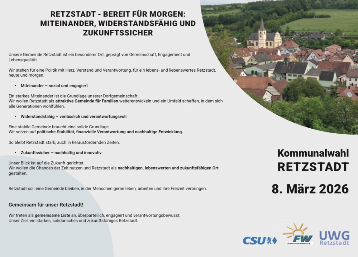 • Kommunalwahl 2026: Vorstellung der Kandidatinnen und Kandidaten für Retzstadt